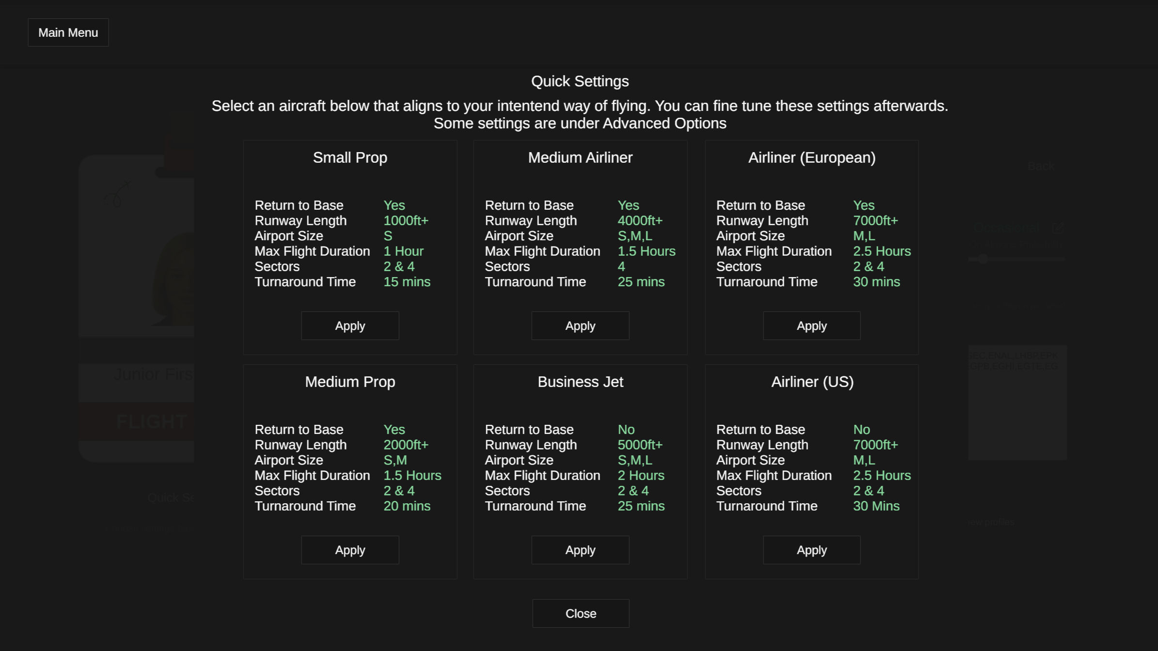 A further large update (v1.0.413) in November mainly focused on adding features requested by the community. Among them were an option to disable Fly the Line’s ability to force the simulator time, a new moving map that shows the position of other Fly the Line users, and a ‘Return to Base’ toggle option that lets users choose whether their schedule would always have them return to the same base at the end of a shift (similar to European airlines), or have the schedule end the day at any airport in the route map (similar to low cost USA airlines). These new features, along with further improvements to schedule generation, were well received by Fly the Line users.