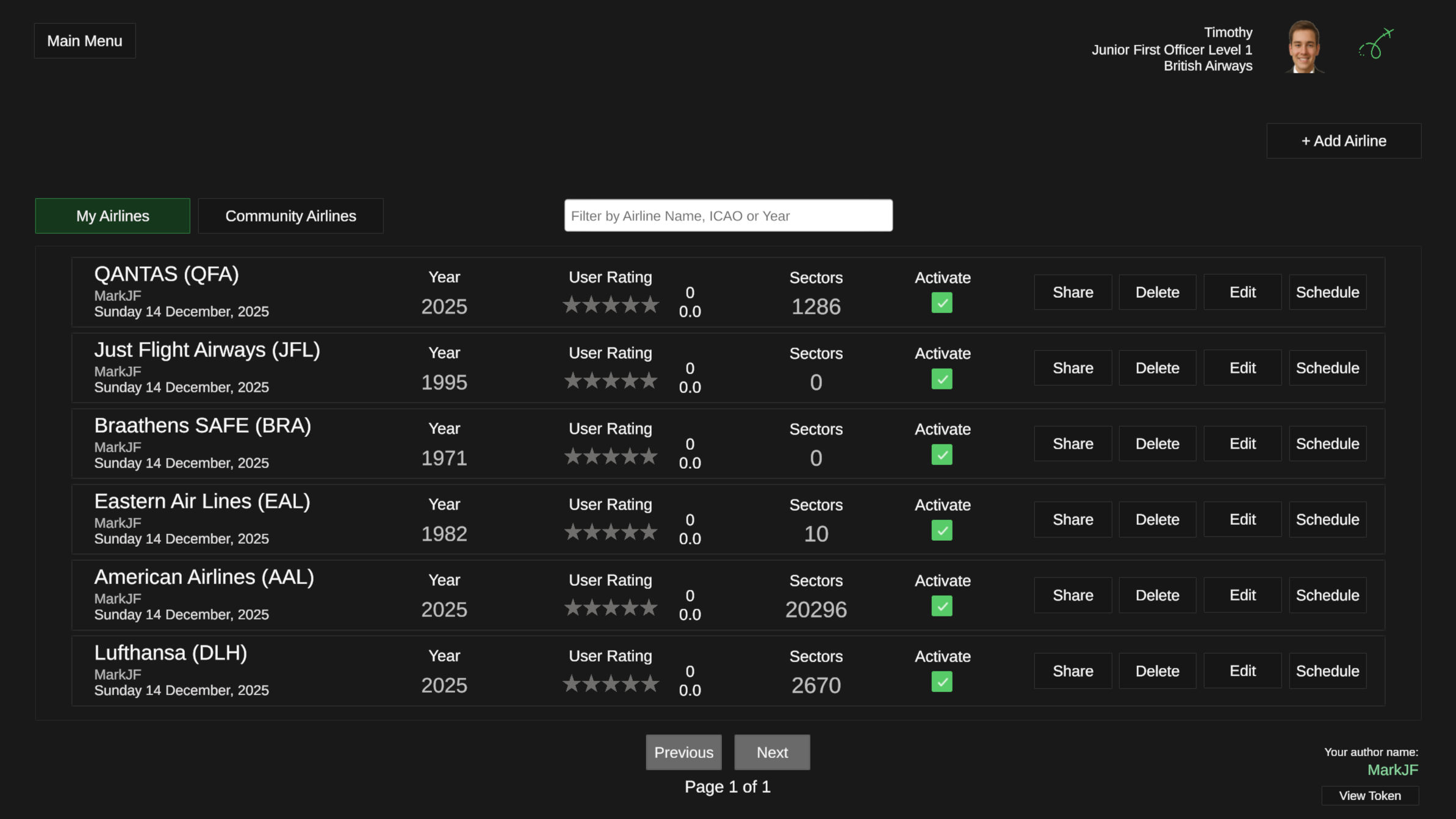 With a solid base to build upon, the development team has now shifted focus to bring further new additions to Fly the Line in the year ahead. The next update is in the latter stages of development, and we expect it to make its way to our internal testing team in early January, with a full release planned for Q1 2026 (the exact timing will depend on testing feedback). The headlining item in this upcoming update will be the Schedule Manager; this brand-new addition will allow users to edit, create and share schedules with other community members, all housed within the Fly the Line app.