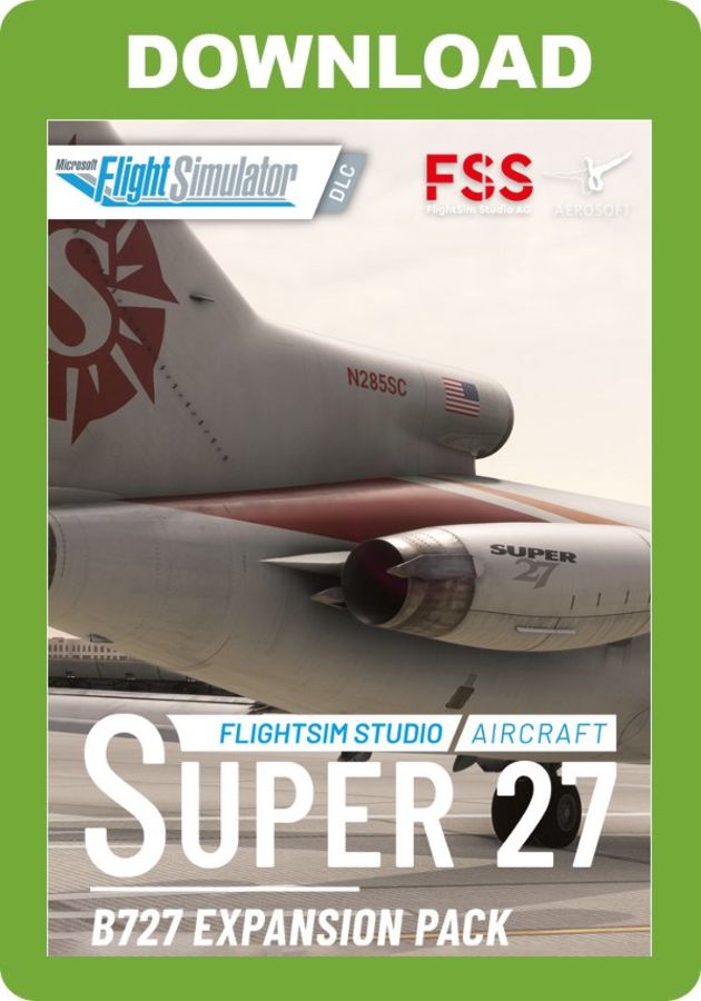 The Super 27 Expansion Pack upgrades the Boeing 727 with modernised engines, avionics and cockpit features. Based on FlightSim Studio's existing 727-200 series version, this DLC brings more power, new sounds and advanced aircraft systems to Microsoft Flight Simulator.