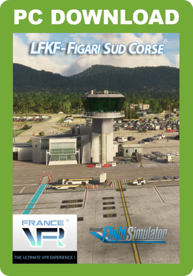 LFKF Figari Sud Corse is an airport add-on for Microsoft Flight Simulator 2020/2024 from the Airport FRANCE Pack #5 and models Figari Sud Corse airport in extremely detailed fashion, including airport buildings, textures and ground markings as well as its night lights and many objects on the platform.