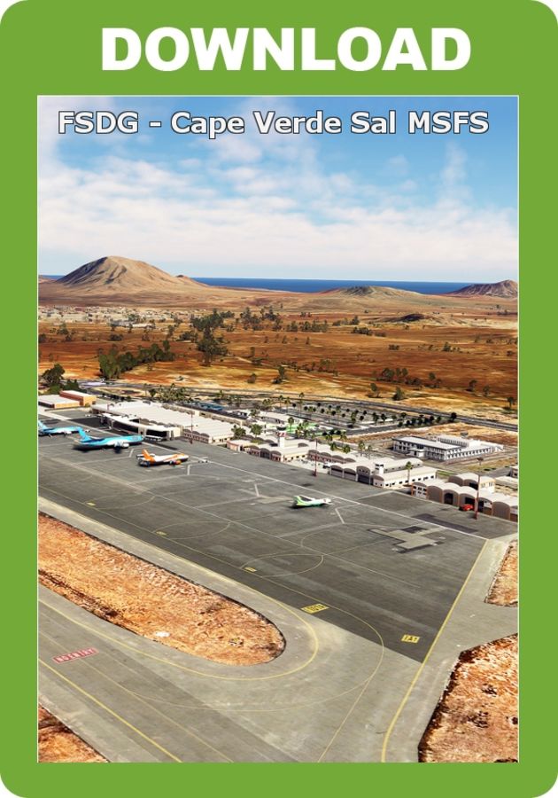 FSDG's accurate rendition of Amílcar Cabral International Airport (GVAC), on the island of Sal in Cape Verde, features an updated ground layout, very detailed models with 3D interiors, realistic light environment, detailed modelling and MSFS technologies such as dynamic lighting and reflective textures.